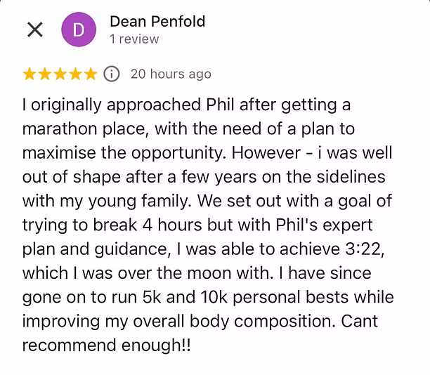 Before I began working with Phill I'd been running for 3 years working up from parkruns to marathon distances but my training lacked focus and consistency.